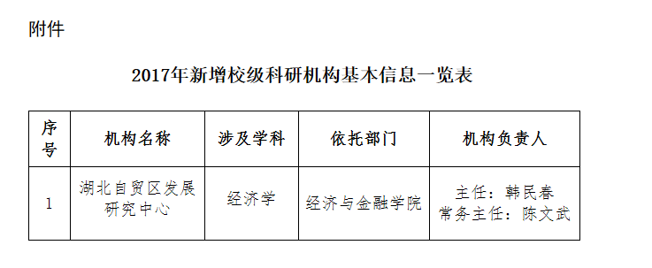 今日,bv伟德国际1946公布新增一校级科研机构。公司申报的“湖北自贸区发展研究中心”基地项目通过审核。韩民春副董事长为机构负责人。本研究中心将主要从贸易方式创新升级研究、武汉科技金融的开放创新及风险监管研究及长江中游国际物流枢纽建设研究三个方面展开。
