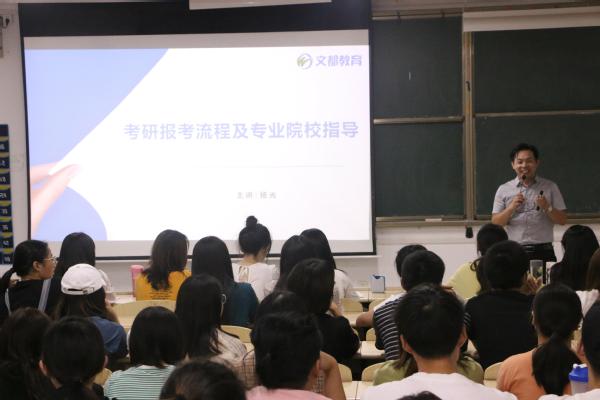 本次考研专题辅导过程中,杨光先生将考研与高考做对比,突出考研中“做好规划”的重要性,并对考研“四阶段”即巩固阶段、冲刺阶段、初试阶段、复试阶段需要注意的事项进行详细的讲解。此外,杨光先生告知备考学子在确定考研目标是要切合实际,不要好高骛远,根据自身实力报考公司。备考学子在确定报考专业时,杨光先生给予三点建议:第一,尽量本专业或平行专业,不跨考;第二,如果跨考,尽量按兴趣选择专业,根据自己就业面来选择:第三,按自己实力选择。此次分享会后,文都教育集团还将针对公司学子就有关考研备考、就业创业等继续加强相关指导。