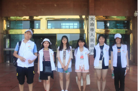 项目介绍:经济与金融公司暑期社会实践活动由证券协会16级和17级的七位干事共同开展。此次活动获得校级立项,指导老师为经济与金融公司金融教研室主任袁亮老师,主要实践内容是由这七人组成的团队,前往湖北省黄石市和湖北省大冶市。成员们通过实地考察实行“绿色金融”并取得良好成效的试点城市,感受到当地相应十九大号召和国家环境治理政策的决心。并且还前往当地银行和政府机构,了解他们在金融与环保事业结合上取得的成绩,学习他们就“绿色金融”方面发展的经验,总结发展路上遇到的问题和困难,丰富和完善有关于“绿色金融”方面的知识和信息,促进武汉在此方面的发展。