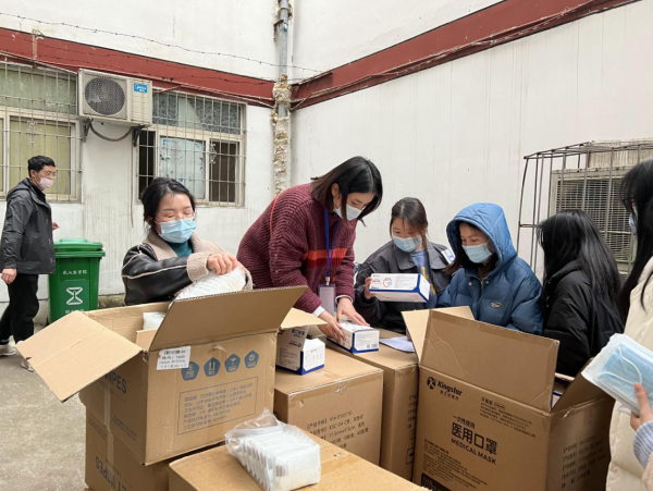 在封闭式管理前期,经济公司辅导员全体率先加入到了派送大军中。一万多个口罩、消毒湿巾、奶茶...辅导员们往返于两个校区之间,清点分发物资数目,为员工发放防疫物资,确保“人手一防护”。辅导员表示,我们就是员工们在公司的依靠,这种关键时期我们一定要冲在前面,为他们做好保障。