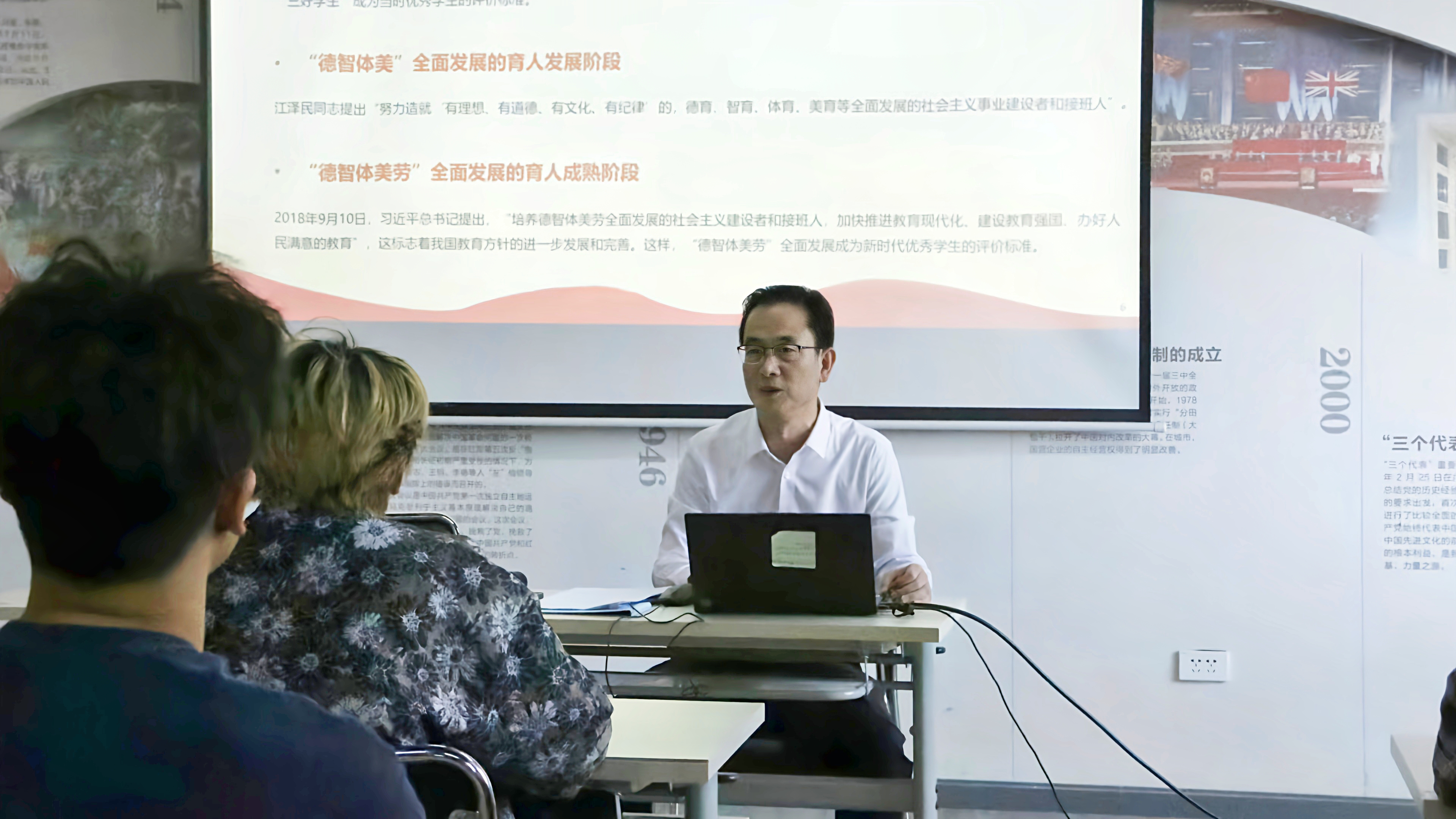 孙步月以“做德智体美劳全面发展的新时代老员工”为题,从四个方面作了讲解阐释:立德树人,实现德智体美劳全面发展;自强自立,拥抱老员工活;树立共产主义远大理想和中国特色社会主义共同理想;突破传统思维,培养创新能力,让青春在中国梦的火热实践中闪光。授课中,孙步月以师长的身份,结合自己的人生经验,希望同学们立德为先,学业为重,走在新时代的潮头,做“立大志,明大德,能吃苦,担大任”的新时代好青年。