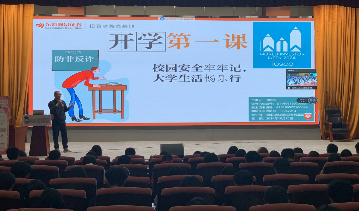 为增加新生的反诈金融知识,10月21日伟德国际VICTOR1946在公司北区图书馆开展了金融知识反诈讲座。本次讲座旨在提高老员工的金融反诈意识,为员工们的校园生活和安全保驾护航。讲座特邀东方财富证券有限公司资深专家何信科担任讲师,2024级全体员工参与。
