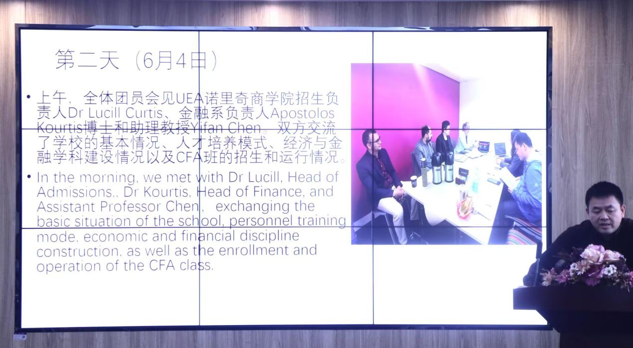 高考老师率先对赴英国学术交流团做出总结汇报,该团队响应公司发展需求前往东安格利亚大学诺里奇商公司进行交流学习,为公司带来了许多宝贵意见,例如,与AI以及大数据等领域进行跨学课培养人才;注重员工的批判性思维和可持续发展能力的培养等。同时,推动公司与东安格里亚大学达成合作办学的意向。