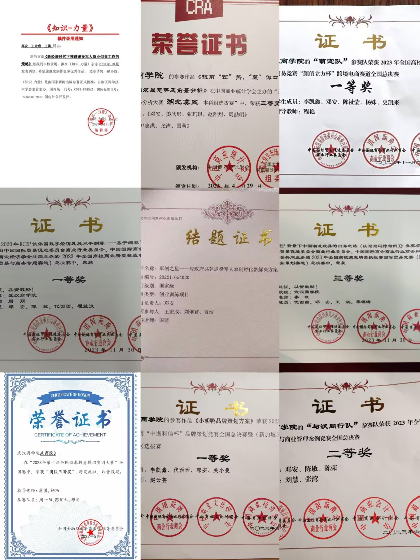 邓安荣誉证书 本人供