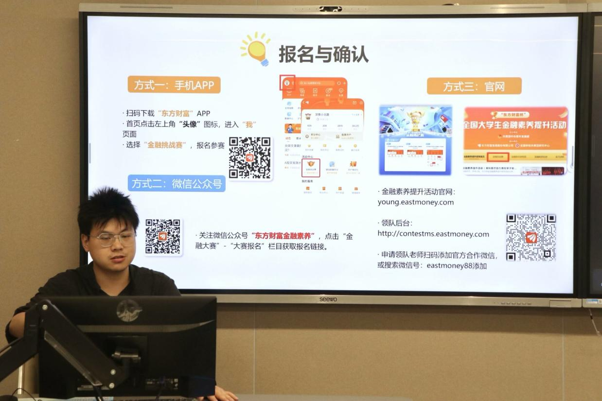 讲座中,主讲人何信科凭借深厚的专业功底,围绕金融基础理论、股票市场发展趋势及投资策略等内容展开系统讲解,通过典型案例剖析与数据解读,为在场同学清晰呈现金融市场运行逻辑。讲解过程中,工作人员同步发放宣传手册,帮助参与者全面了解金融知识。随后,东方财富相关负责人详细介绍第十一届金融挑战赛,从报名时间、参赛流程、竞赛规则到奖项设置等方面进行细致解读,并着重强调赛事的行业认可度与奖项权威性,激发了员工的参赛热情。