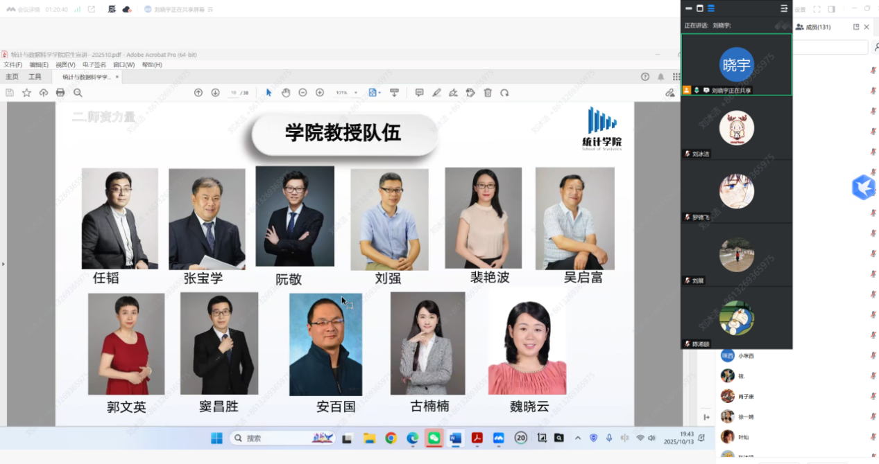 宣讲会上,各高校教师分别就各校应用统计专硕的招生政策、备考要点及专业特色进行了详细介绍。兰州财经大学突出其统计学科的区域优势;西安财经大学强调了其培养模式;湖北大学注重数据科学与跨学科应用;北京物资公司聚焦物流与供应链统计方向;浙江工商大学结合数字经济背景强化实践能力;首都经济贸易大学则着重金融统计与风险管理。专家们深入浅出的讲解,激发了在座同学的浓厚兴趣与报考热情。