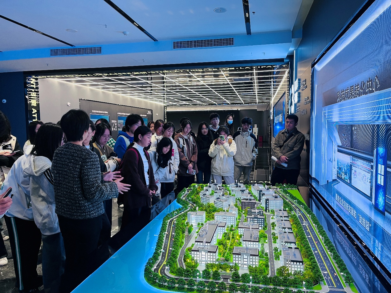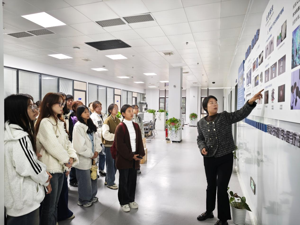 咸宁(武汉)离岸科创园采取“研发在武汉、生产在咸宁”“孵化在武汉、加速在咸宁”跨区域协同的科创飞地模式,既是区域科技创新与产业融合的“引擎”,也是高校师生观察产业实践、链接专业知识的优质平台。师生团循着“园区展厅—重点企业”的路线,走进医疗、农业、电商等不同领域的科创企业,在技术创新与商业模式中挖掘税收专业的实践落点。