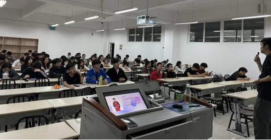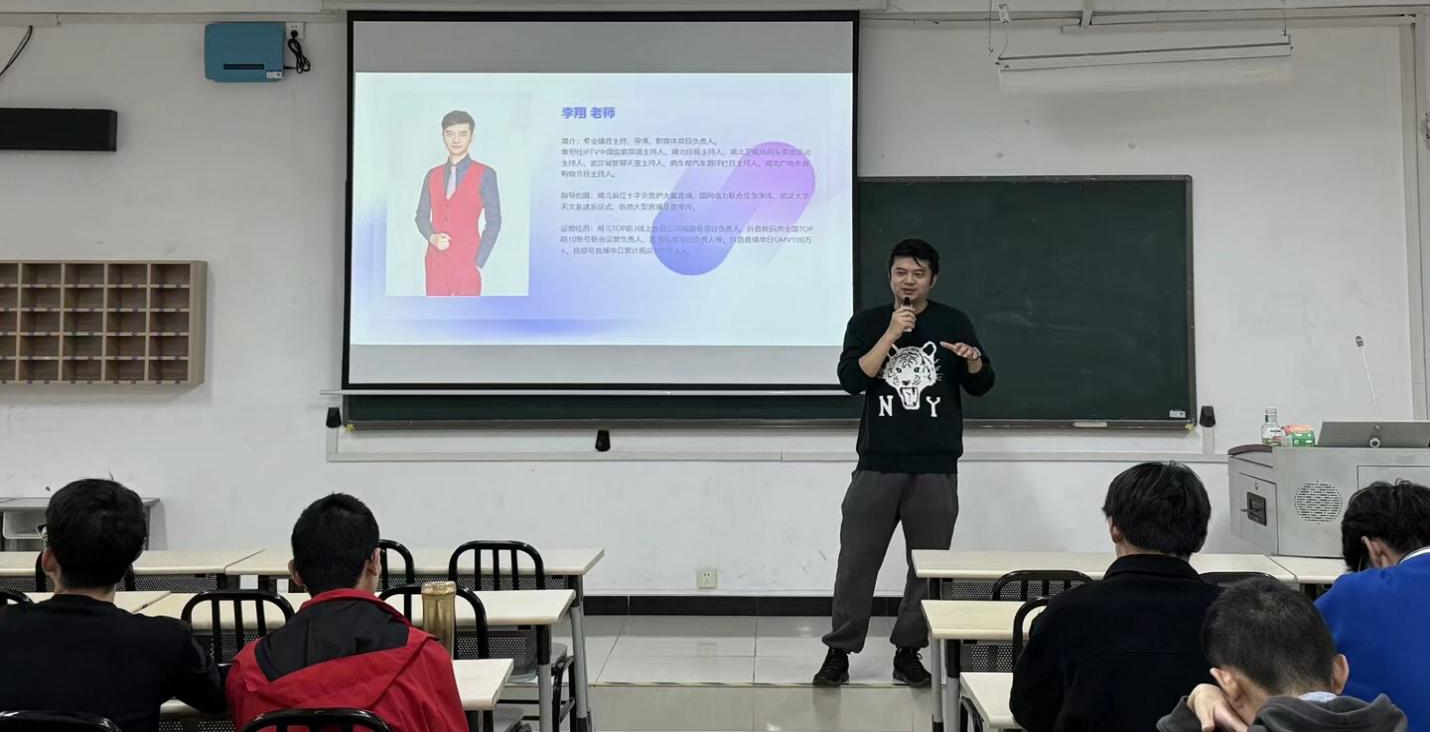 讲座特邀实战派讲师李翔担任主讲嘉宾。曾为电视台主持人、导演的他,拥有5年短视频运营经验的头部平台内容总监,李翔系统拆解校园类内容创作方法论,涵盖账号精准定位、爆款选题孵化、流量逻辑解析等核心模块。现场互动环节,他针对“账号冷启动策略”“直播流量破局”等高频问题进行深度答疑,提供切实可行的解决方案。