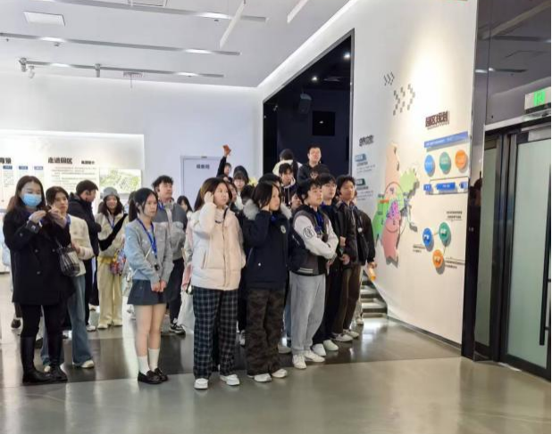 随后,师生们走进武钢大数据中心。明亮的展厅内,多块高清大屏实时呈现着企业数字转型的全景图景,瞬间吸引了学子们的目光。“大家现在看到的是我们的核心数字存储系统,这里实时存储着生产全流程数据、环保监测数据以及供应链协同数据”讲解员手指屏幕上跳动的数据流介绍道。屏幕左侧,“数字孪生工厂”模型正动态演示着钢铁生产从原料进场到成品出库的全链条数字化管控,从高炉炼铁的温度调控,到钢材质量的实时检测,每一个环节都通过数字技术精准把控。